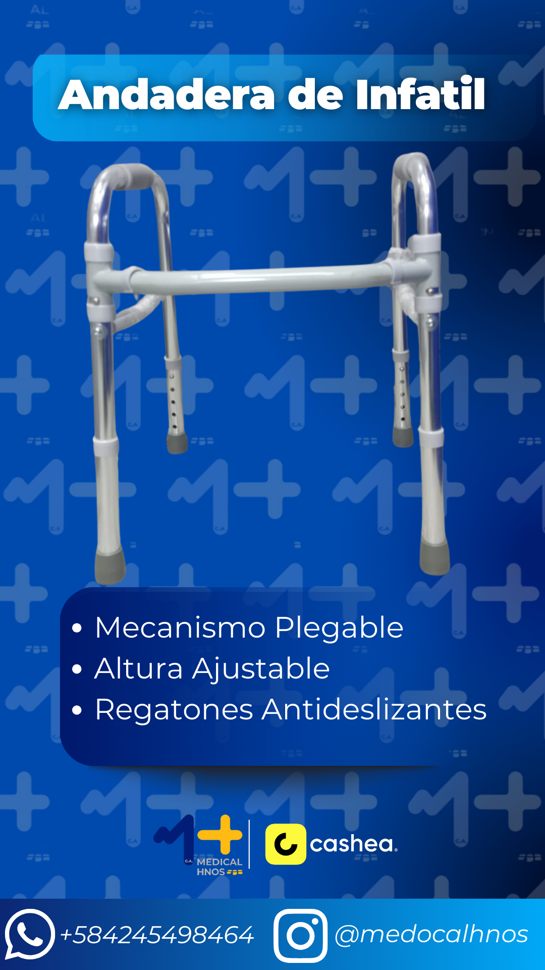 Diseñada especialmente para brindarle soporte y seguridad a los más pequeños. Cuenta con una estructura de aluminío, plegable, altura ajustable y antideslizantes para mayor seguridad.